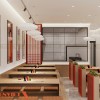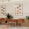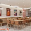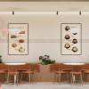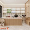 Nội thất sử dụng vật liệu gỗ kết hợp màu sắc ấm. Tổng thể mang lại cảm giác gần gũi và dễ chịu. Hệ đèn trần bố trí đồng đều, cung cấp ánh sáng ổn định. Không gian luôn sáng rõ, phù hợp cho hoạt động ăn uống.