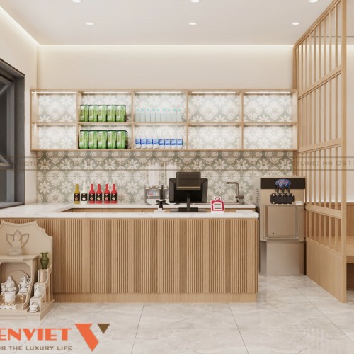 Các chi tiết trang trí được tiết chế, tránh gây rối mắt. Vách ngăn nhẹ giúp phân chia khu vực nhưng không làm bí không gian. Thiết kế này giúp nhân viên dễ quan sát và phục vụ. Đồng thời giảm chi phí bảo trì cho chủ đầu tư.