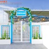 Việc sử dụng màu sắc kết hợp với décor cổng bằng cây xanh khéo léo tạo nên sự nhất quán và làm toát lên tinh thần của mẫu thiết kế quán cafe Whiteland, khiến khách hàng bị thu hút bởi vẻ đẹp hiện đại, tươi mới.