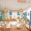 Ngoài ra, Penviet cũng tận dụng lại nội thất và khéo léo đan xen để làm mới cửa tiệm cũng như giúp tiết kiệm chi phí thiết kế quán cafe. Không gian xanh mát điểm xuyết những tone màu xanh, vàng gỗ khiến khách hàng cảm nhận như đang được tận hưởng không khí biển. Điều này đã làm nên sự khác biệt cho Whiteland.
