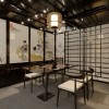 Sử dụng vật liệu chủ đạo là gỗ tự nhiên, giấy shoji và tre mây đan xen, tạo cảm giác gần gũi, ấm cúng và yên bình. Không gian sử dụng đèn lồng vuông kiểu cổ, kết hợp cùng các tấm rèm noren tạo nên hiệu ứng thị giác mềm mại, linh hoạt mà vẫn đảm bảo tính riêng tư cho từng khu vực.