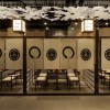 Phần trần nhà được trang trí bằng các cụm lá trắng treo tạo hình nghệ thuật mô phỏng những đám mây hoặc cánh hoa anh đào rơi giống như đang ngồi giữa thiên nhiên tĩnh lặng của Nhật Bản.