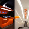 Ấn tượng đầu tiên khí bước vào có lẽ chính là màu sắc của thiết kế quán ăn nhanh Yoshinoya. Một màu cam rực rỡ chiếm trọn không gian thiết kế quán ăn nhanh đối lập với trần nhà sử dụng màu đen tuyền.