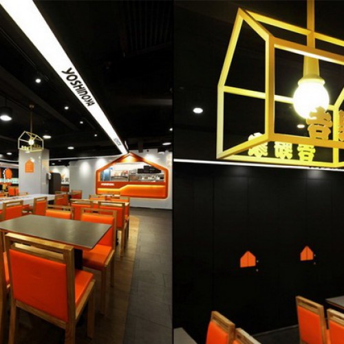 Mẫu thiết kế quán ăn nhanh Yoshinoya gây ấn tượng bởi cách kết hợp màu sắc và bài trí tạo một thiết kế quán ăn nhanh rất ấn tượng.