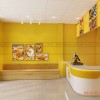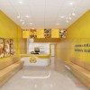 Thiết kế quán gà rán nổi bật với gam màu vàng tươi trẻ thu hút mọi ánh nhìn. Đây là gam màu chủ đạo cho tổng thể không gian phục vụ khách hàng bên trong quán. Từ màu sơn tường, chi tiết trang trí trên quầy thu ngân, bảng thực đơn… đều có màu vàng rất đẹp mắt.