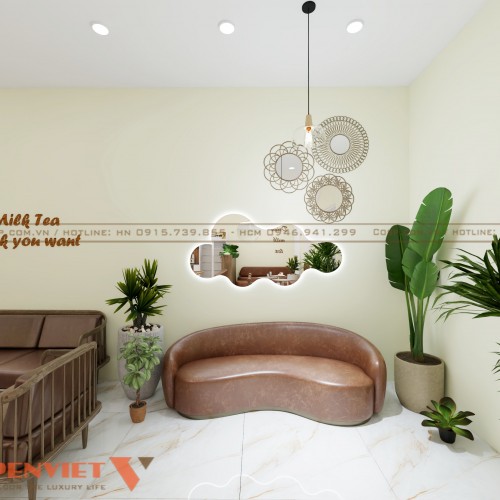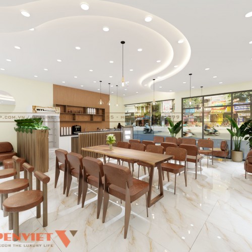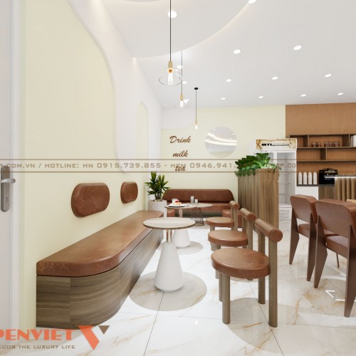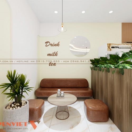Thiết kế quán trà sữa anh Hiệp tại Bắc Giang hướng đến yếu tố thẩm mỹ, đảm bảo công năng và sự thoải mái cho khách hàng. Nếu quý khách muốn sở hữu không gian kinh doanh ấn tượng như này, hãy liên hệ PenViet ngay hôm nay để được hỗ trợ.