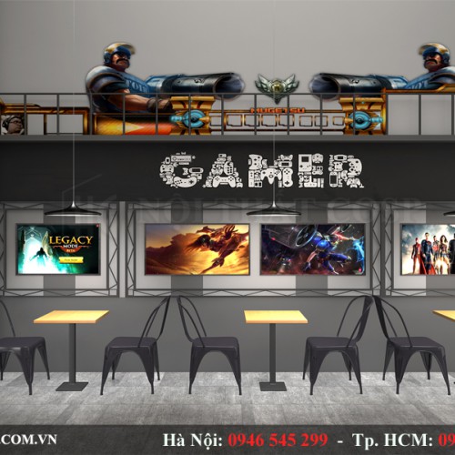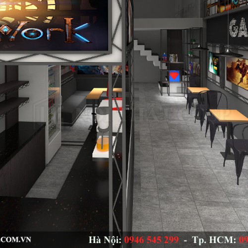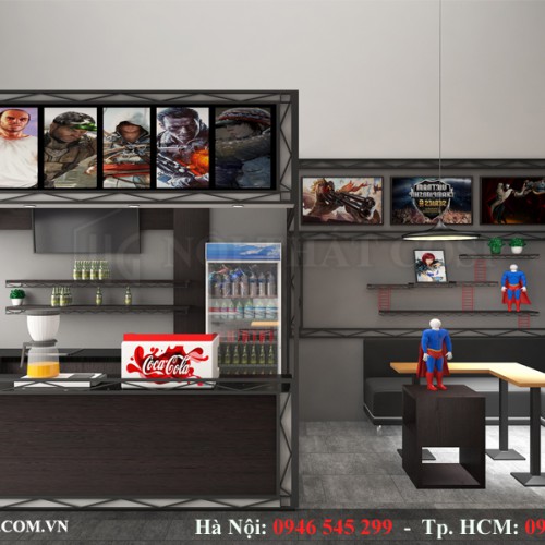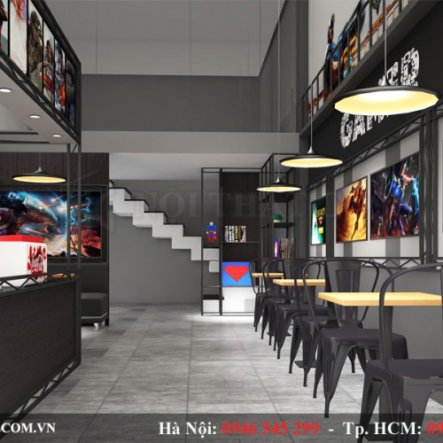 Thiết kế Cửa hàng café và đồ ăn nhanh quảng cáo về game