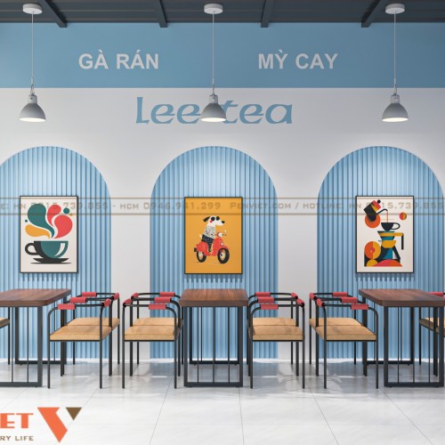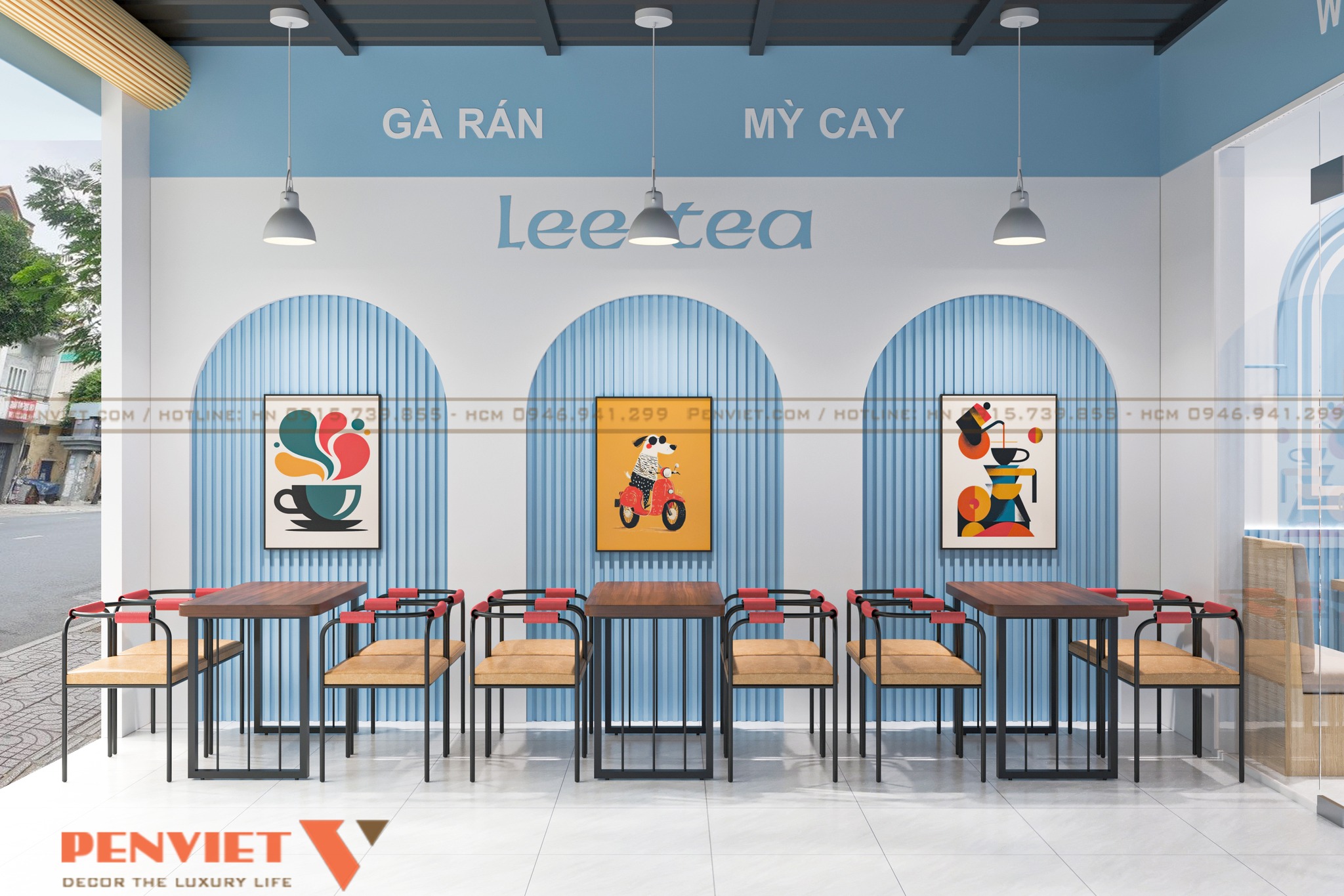 Bố cục nội thất bên trong đi theo phong cách tối giản. Các chi tiết trang trí được tiết chế. Nhờ đó, không gian nhỏ nhưng không bị bí. Thiết kế phù hợp với mô hình kinh doanh nhanh. Khách dễ gọi món, dễ di chuyển, dễ quay lại.