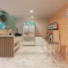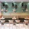 Vì sản phẩm mà cửa hàng này đang cung cấp là loại đồ uống rất “healthy” nên kiến trúc sư đã lựa chọn tông màu xanh lá để thiết kế cửa hàng này. Bên cạnh sử dụng màu xanh thì decor thêm bức tường cây lá giúp mang đến cảm giác tươi mát, tràn đầy năng lượng cho cửa hàng rất nhiều.