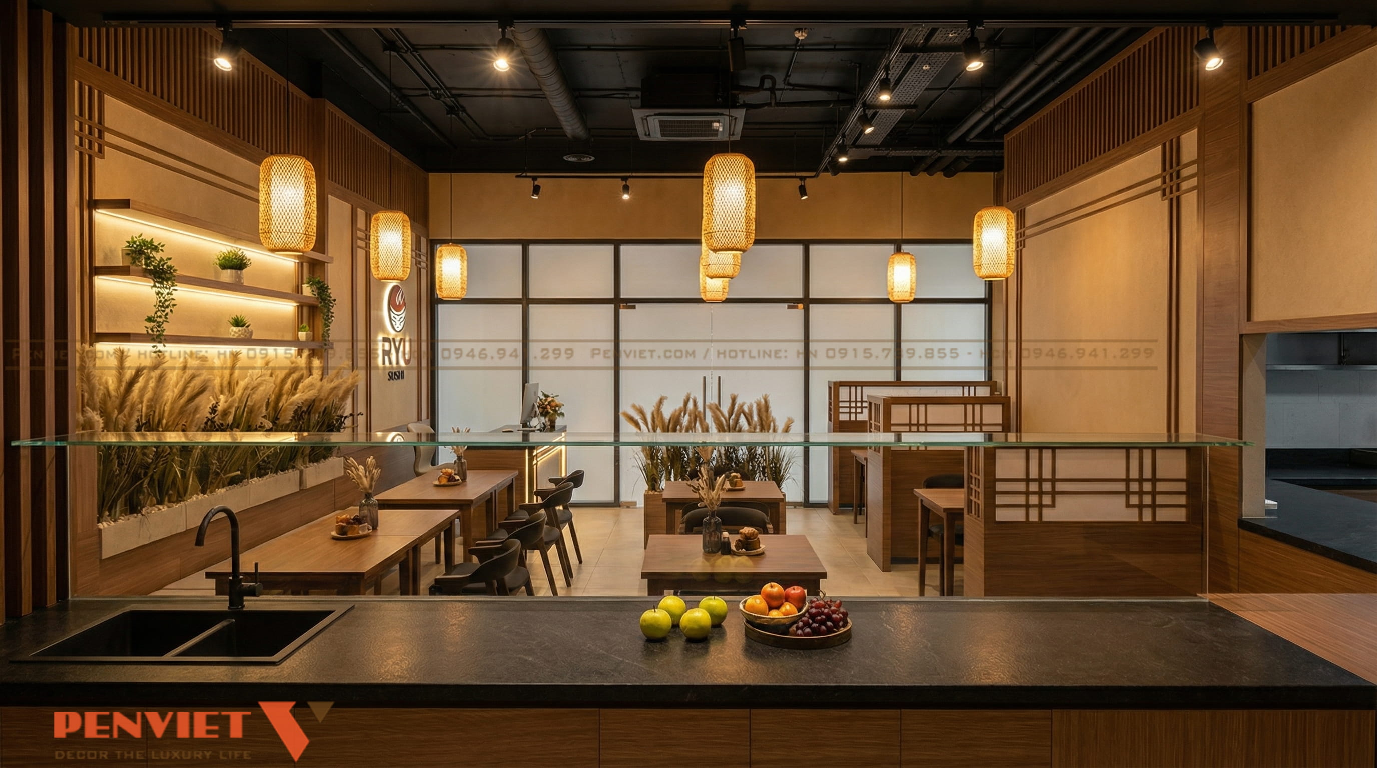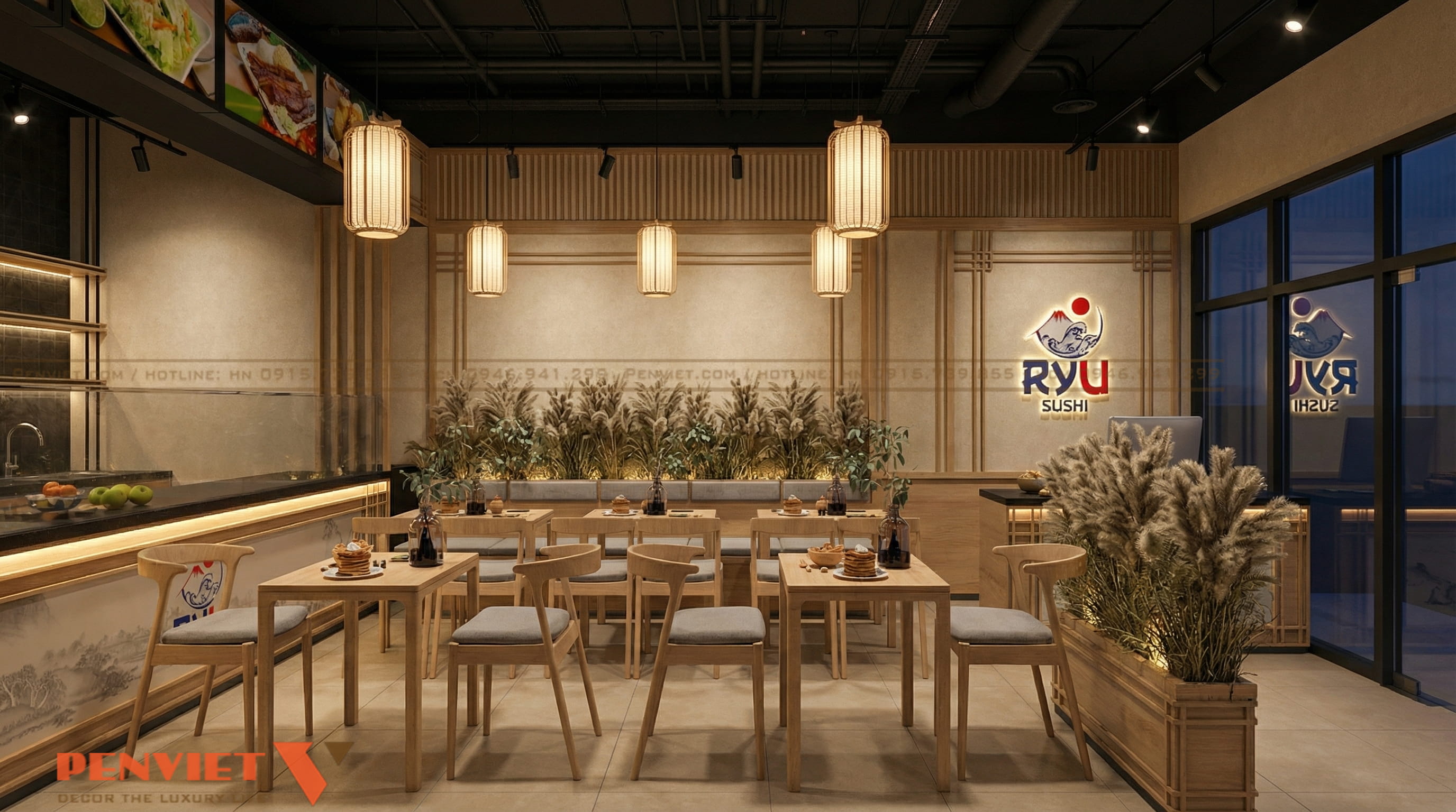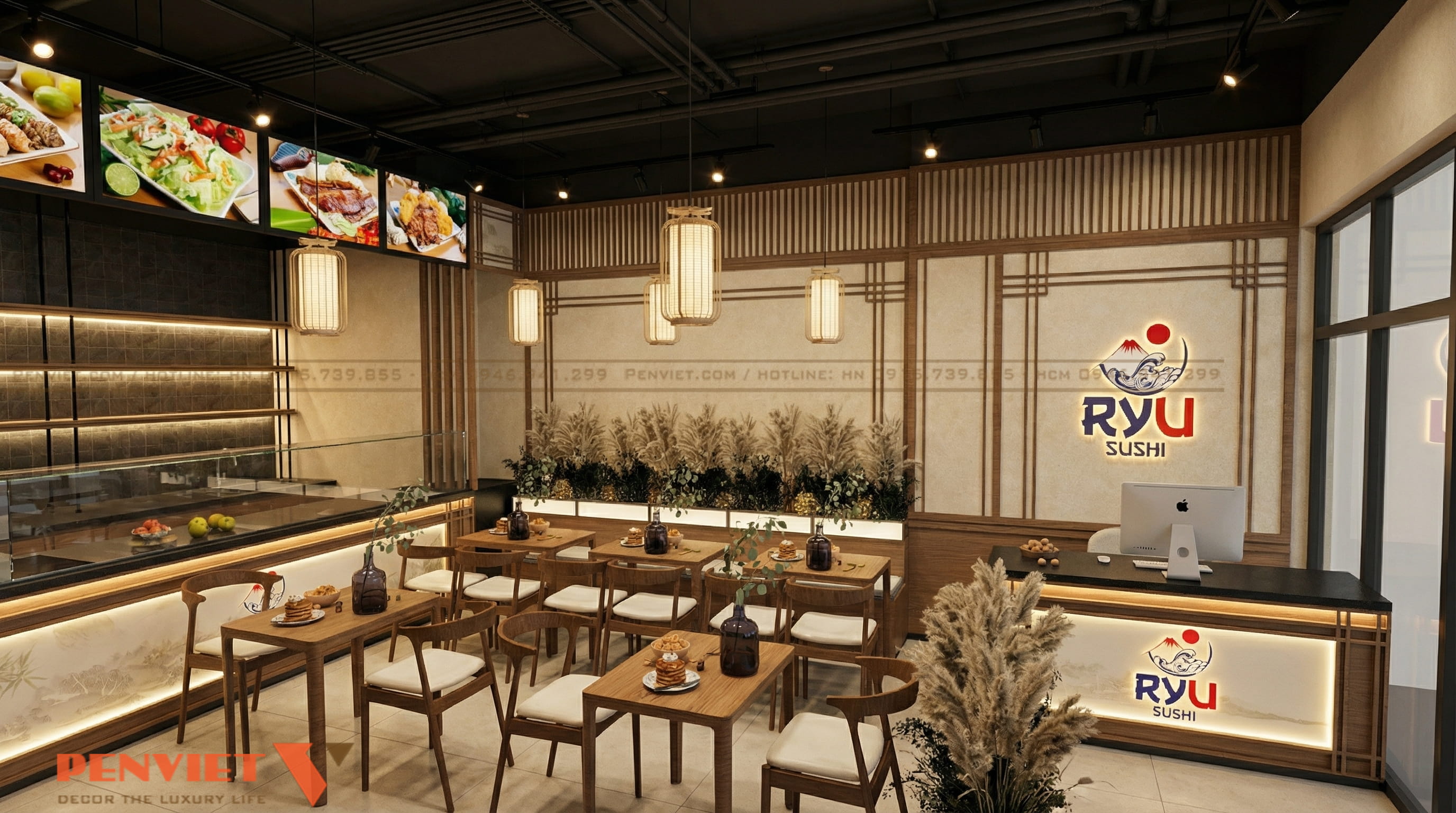 Dự án thiết kế nhà hàng sushi 54m2 của khách hàng em Quang tại Vin Ocean Park 1 hướng đến sự tinh gọn và hiệu quả. Không gian được cải tạo theo phong cách Nhật Bản hiện đại, ưu tiên công năng và cảm xúc khách hàng. Bố cục rõ ràng giúp tăng số lượng chỗ ngồi nhưng vẫn giữ sự riêng tư. Đây là mô hình phù hợp cho chủ đầu tư muốn khai thác mặt bằng nhỏ.
