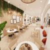 Sàn nhựa giả gỗ góp phần tăng thêm sự mộc mạc, đơn giản cho cửa hàng. Không chỉ thế, các kiến trúc sư đã sử dụng một số cây xanh để giúp không gian như tươi mát và thân thiện.