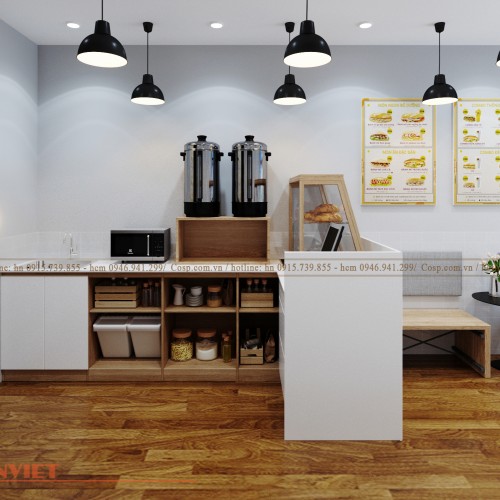 Nếu bạn đang có nhu cầu thiết kế cửa hàng bánh mì hay thiết kế cửa hàng ăn uống hãy liên hệ ngay tới Nội thất Cosp để được tư vấn phương án thiết kế hợp lý nhất.