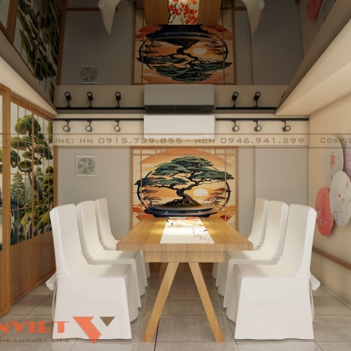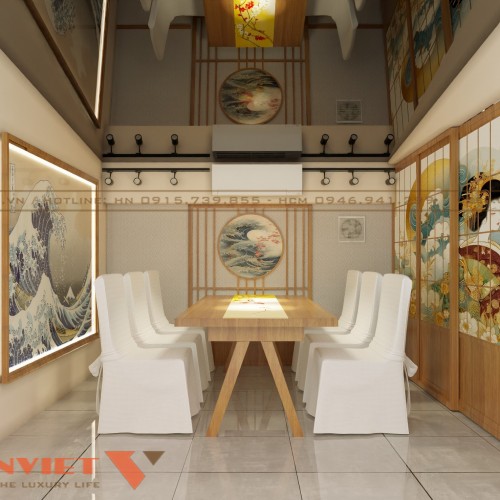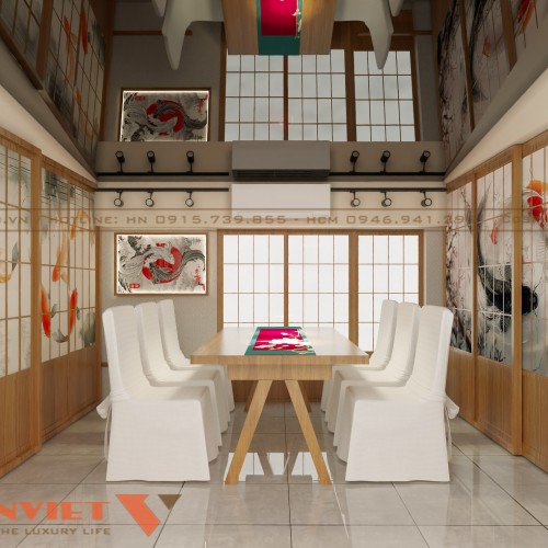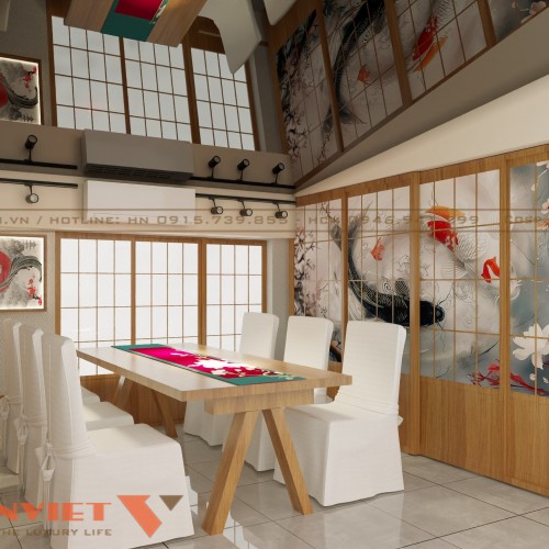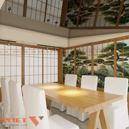 Thiết kế nội thất nhà hàng với phòng VIP của anh Hà mang đậm phong cách Nhật Bản truyền thống. Nếu bạn đang tìm kiếm cảm hứng cho việc thiết kế nội thất nhà hàng, đặc biệt là các không gian phòng riêng cao cấp, thì mô hình thiết kế này chắc chắn sẽ là một lựa chọn không thể bỏ qua. Liên hệ PenViet để được các chuyên gia thiết kế tư vấn thêm.
