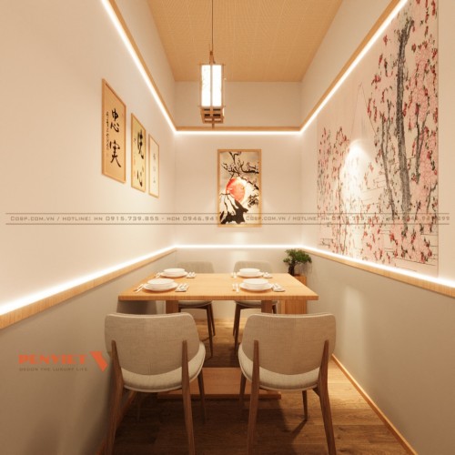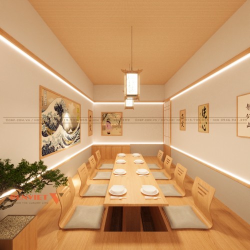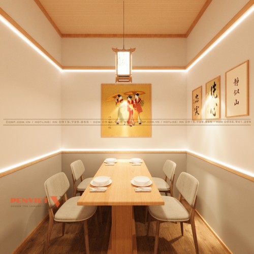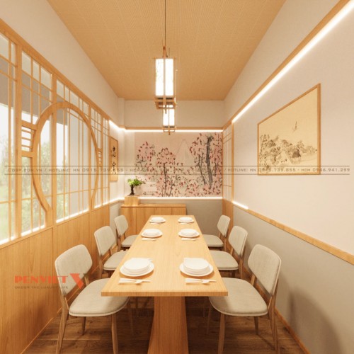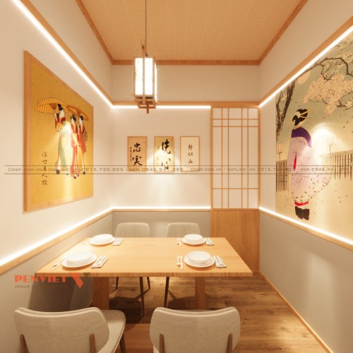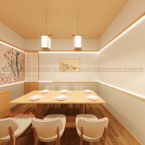 Với thiết kế nhà hàng sushi Kuan tinh tế thì đây không chỉ là nơi để thưởng thức món ăn ngon mà còn là không gian để thực khách trải nghiệm văn hóa Nhật Bản. Mỗi phòng đều mang một nét độc đáo riêng, từ truyền thống đến tiện nghi giúp khách hàng có những trải nghiệm trọn vẹn và đáng nhớ. Hãy liên hệ PenViet để chúng tôi đồng hành trong các mẫu thiết kế nhà hàng cho quý khách.