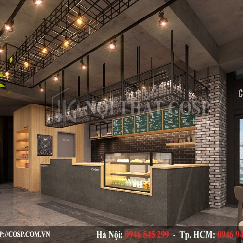 Quầy thu ngân được thiết kế tích hợp quầy pha chế, nhờ đó tạo sự linh hoạt và thuận tiện cho nhân viên trong quá trình làm việc.