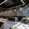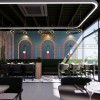 Các vòm tường lớn với họa tiết nổi ba chiều mang lại hiệu ứng thị giác mạnh mẽ. Sự kết hợp giữa đường cong mềm mại và các mảng màu rực rỡ tạo nên điểm nhấn độc đáo mà ít quán ăn nào sở hữu.