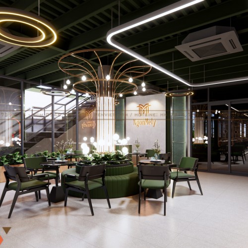 Quán Mỳ Cay Ngon Mê Ly tại Vĩnh Long được cải tạo lại toàn diện để phù hợp nhu cầu kinh doanh ẩm thực hiện đại. Chủ đầu tư anh Nam mong muốn không gian mới phải nổi bật, khác biệt và tạo cảm giác thư giãn cho khách hàng. Dựa trên mặt bằng rộng 100m2, đội ngũ thiết kế đã xây dựng nên một phong cách nội thất sáng tạo, sang trọng và giàu tính nhận diện thương hiệu.