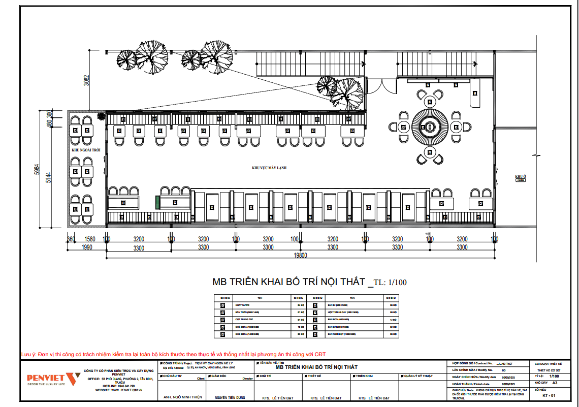 Diện tích 100m2 được bố trí chặt chẽ nhưng vẫn đảm bảo lối đi thông suốt cho nhân viên và khách. Các bộ bàn ghế hiện đại, gọn gàng, màu sắc đồng bộ tạo sự chuyên nghiệp.