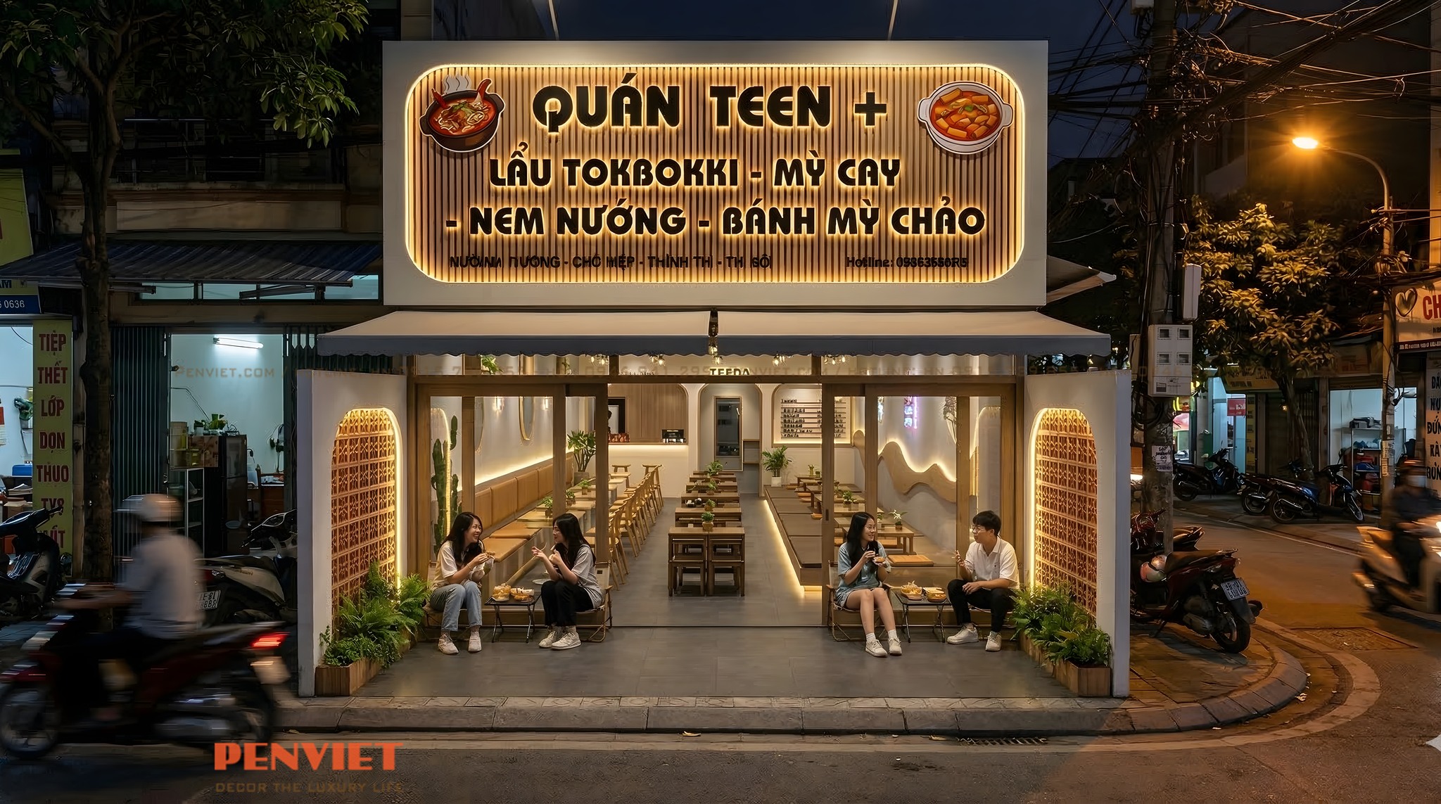 Dự án thiết kế quán ăn vặt 90m2 tại Thanh Trì mang lại giải pháp cân bằng giữa thẩm mỹ và công năng. Không gian trẻ trung, dễ vận hành, phù hợp mô hình kinh doanh ăn vặt hiện đại. Đây là hướng đi đáng cân nhắc cho chủ đầu tư đang muốn cải tạo mặt bằng và tăng doanh thu bền vững.