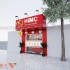 Biển bảng của thiết kế quán cơm sườn cay HIMC gây ấn tượng mạnh nhờ phong cách thiết kế hiện đại, nổi bật và cực kỳ bắt mắt. Toàn bộ phần biển hiệu sử dụng tông màu đỏ chủ đạo kết hợp cùng trắng mang tính tương phản cao vừa thu hút ánh nhìn vừa truyền tải được sự năng động, trẻ trung, gợi cảm giác ngon miệng.