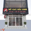 Mặt tiền của quán Mì cay Hải Linh được thiết kế với phong cách đơn giản nhưng hiệu quả cao về nhận diện. Tông đen chủ đạo làm nổi bật logo tô mì đỏ, cùng dòng chữ “Mì cay 7 cấp độ Hàn Quốc” tạo nên sự tương phản mạnh mẽ, dễ nhớ. Font chữ được lựa chọn mang đậm phong cách Hàn, vừa trẻ trung vừa hiện đại, phù hợp với đối tượng khách hàng mục tiêu là giới trẻ.