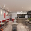 Không gian quán được chia làm hai khu chính gồm khu phục vụ khách và khu bếp, quầy order. Bố cục được tổ chức khoa học, đảm bảo luồng di chuyển thuận tiện giữa các khu vực. Đây là yếu tố quan trọng giúp quán vận hành hiệu quả, đặc biệt trong khung giờ cao điểm.
