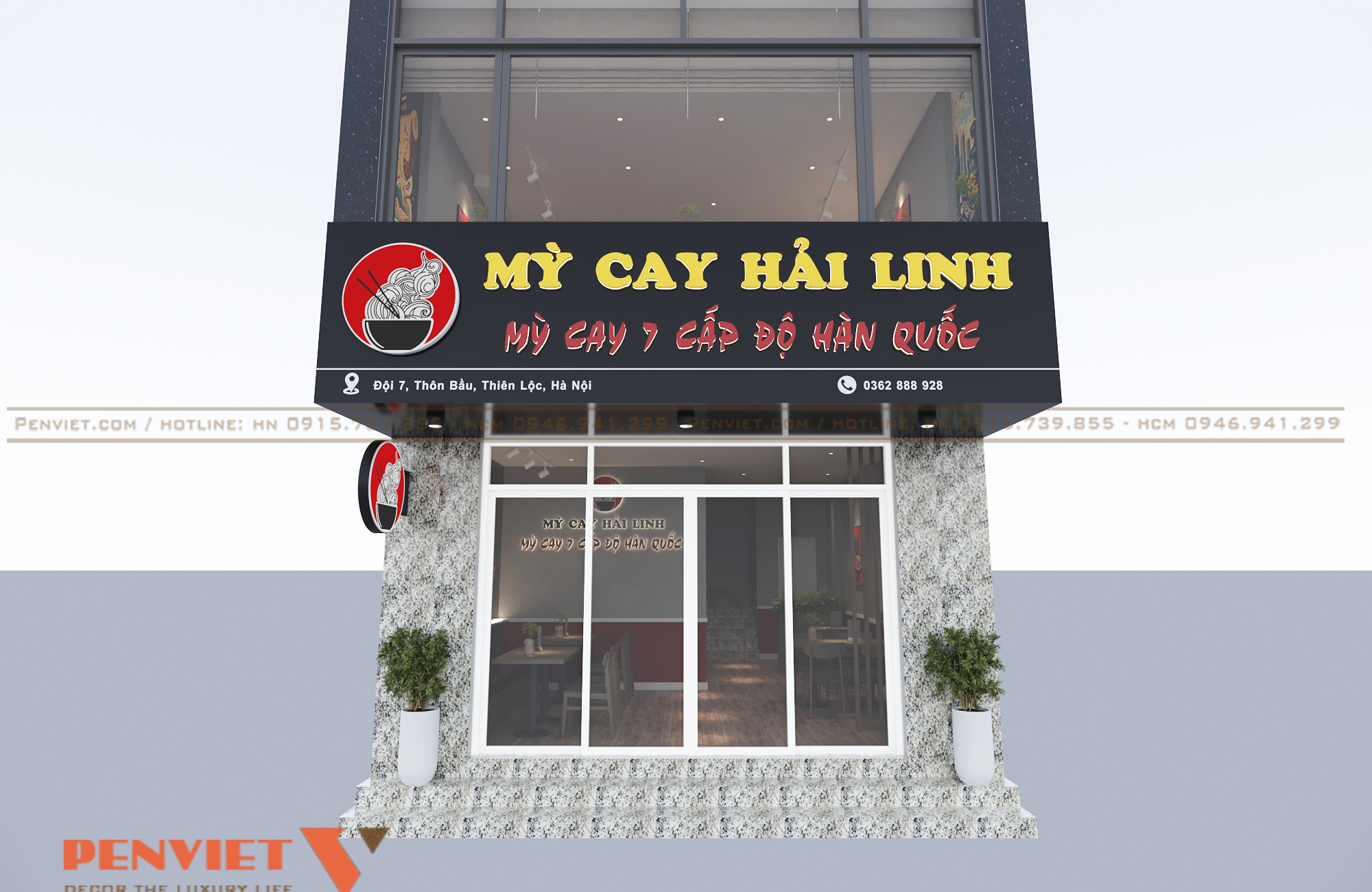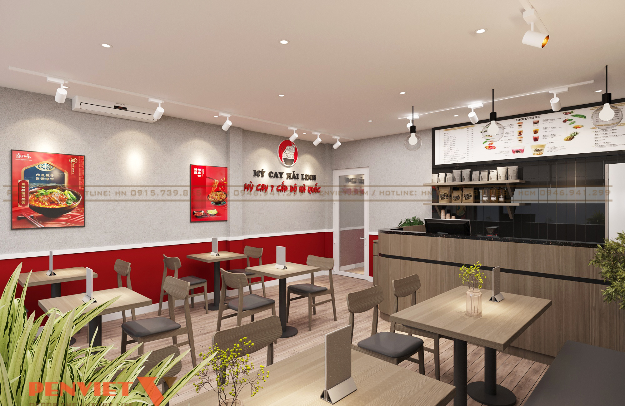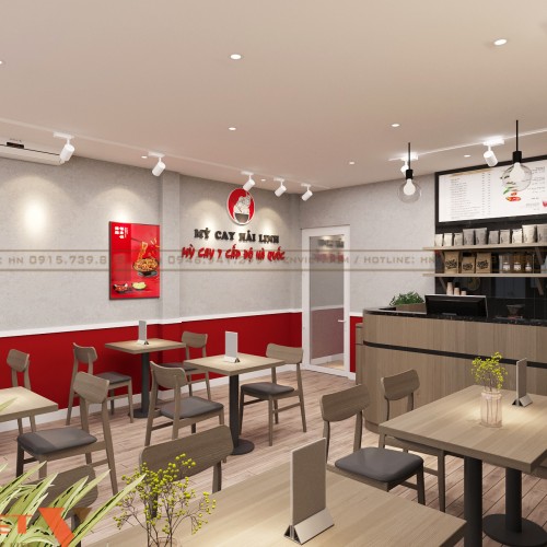 Dự án thiết kế quán mì cay Hải Linh tại Thiên Lộc, Hà Nội được đánh giá cao có thể nâng tầm giá trị kinh doanh cho chủ đầu tư. Từ mặt tiền đến không gian bên trong, mọi chi tiết đều được tính toán kỹ lưỡng để tạo nên một quán ăn vừa mang phong cách riêng, vừa đáp ứng tốt nhu cầu thực tế. Đối với những chủ đầu tư đang có ý định cải tạo hoặc mở mới quán ăn thì đây là gợi ý hoàn hảo.