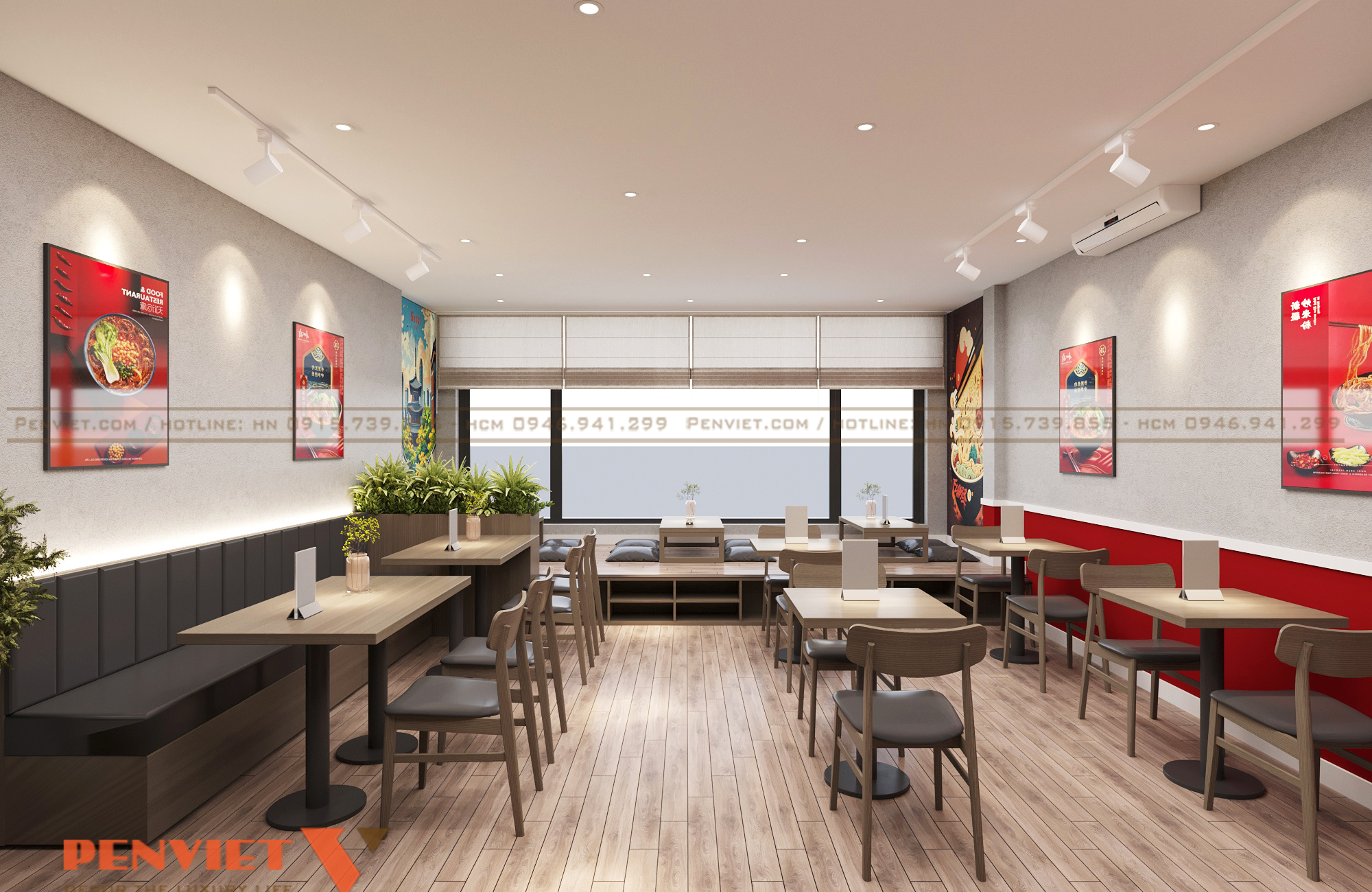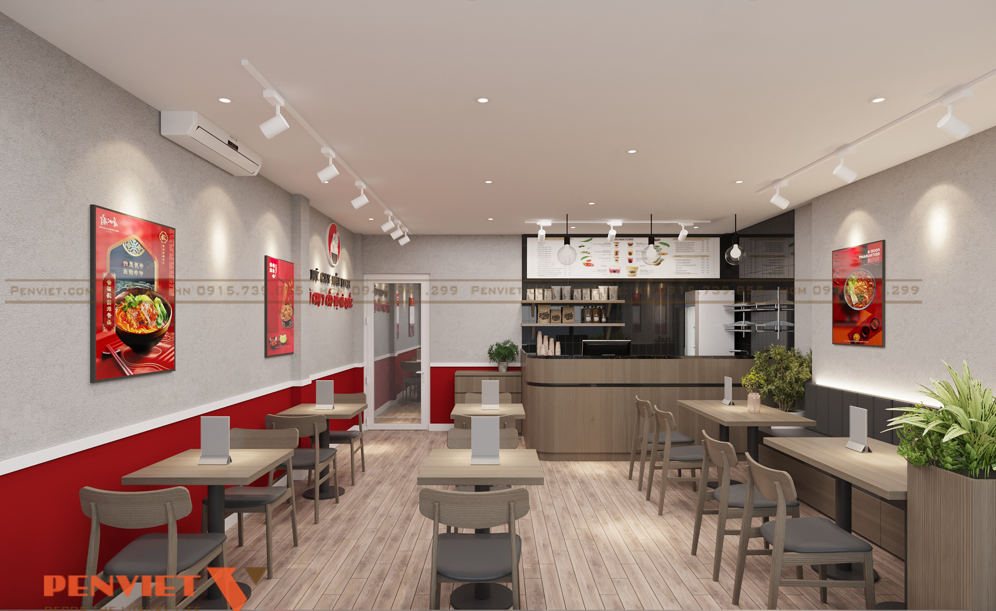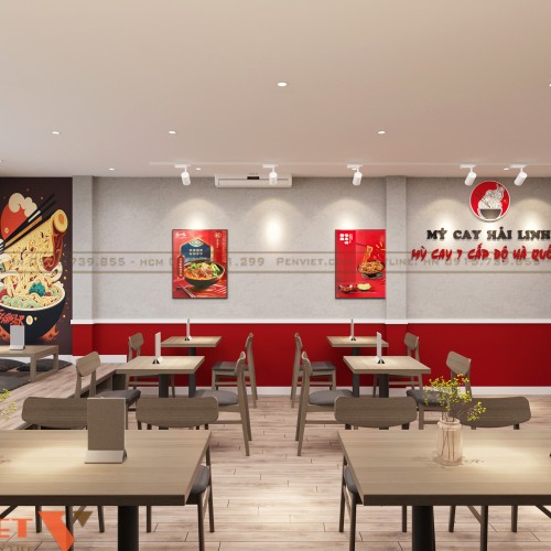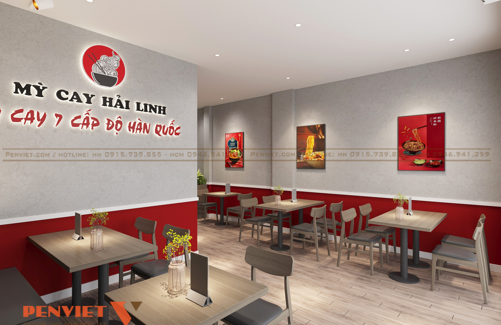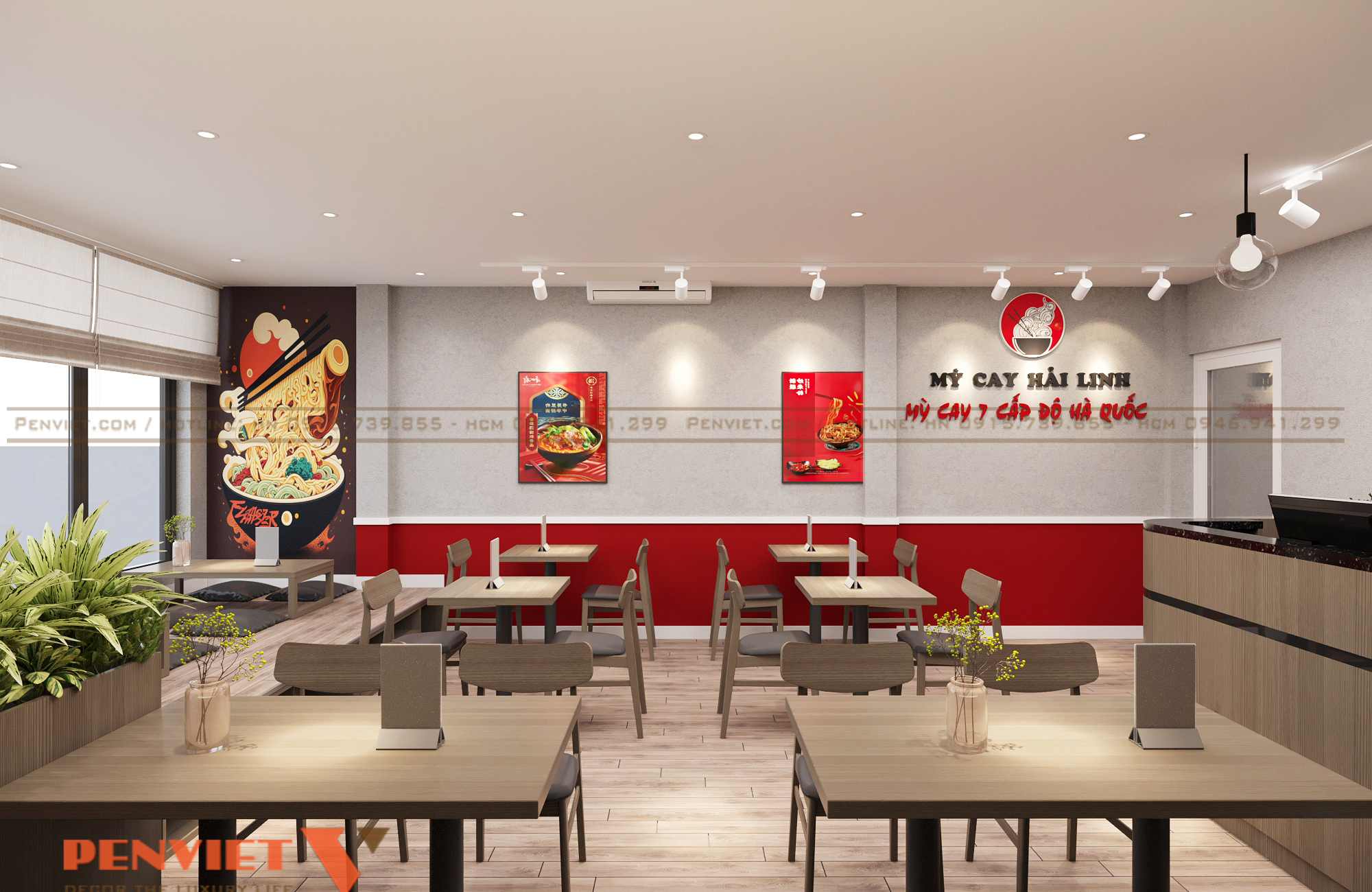 Không chỉ dừng lại ở tính thẩm mỹ, thiết kế quán Mì cay Hải Linh còn mang lại nhiều giá trị thực tế cho chủ đầu tư. Một không gian được thiết kế bài bản giúp nâng cao hình ảnh thương hiệu, tạo ấn tượng mạnh với khách hàng và giữ chân họ quay lại. Bố cục hợp lý còn giúp tối ưu quy trình phục vụ, tiết kiệm thời gian và chi phí vận hành.