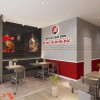 Ý tưởng chủ đạo của thiết kế là mang lại không gian đậm chất Hàn Quốc, nhưng vẫn phù hợp với gu thẩm mỹ và hành vi tiêu dùng của khách hàng Việt. Màu đỏ là biểu tượng cho sự cay nồng đặc trưng của món ăn sử dụng khéo léo làm điểm nhấn trên nền tường xám trung tính. Sự kết hợp này không chỉ gợi lên cảm giác ấm áp mà còn giúp không gian trở nên sinh động, kích thích vị giác khách hàng ngay từ khi bước vào.