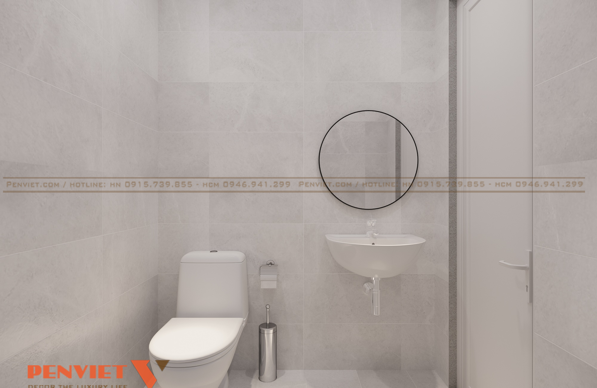 Sàn gỗ sáng màu không chỉ giúp không gian rộng hơn mà còn tạo cảm giác ấm cúng, sạch sẽ. Hệ thống chiếu sáng gồm đèn downlight âm trần kết hợp đèn rọi treo tạo nên hiệu ứng ánh sáng đa tầng, vừa đủ sáng, vừa làm nổi bật vật liệu và màu sắc nội thất.