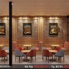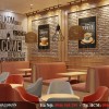 Vấn theo phong cách truyền thống của hang Royaltea là để các vách tường gạch nguyên bản ngăn cách bởi các khung tường ốp gỗ vàng, và được trang trí các khung ảnh logo cá tính.