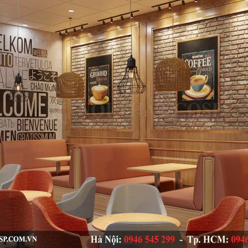 Không gian tầng 2 trong thiết kế quán trà sữa Royaltea Bình Dương: