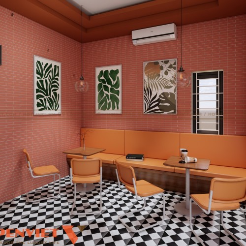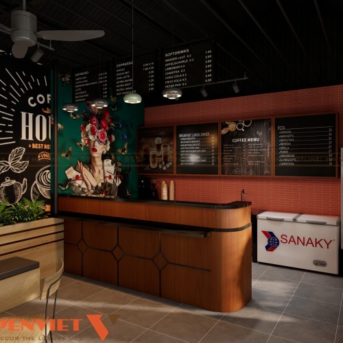 Thiết kế tập trung vào việc tạo điểm nhấn thị giác, tối ưu công năng và tăng trải nghiệm cho khách hàng. Sự kết hợp giữa khu phục vụ mở, quầy pha chế gọn gàng và góc check-in nổi bật giúp quán dễ dàng thu hút khách.