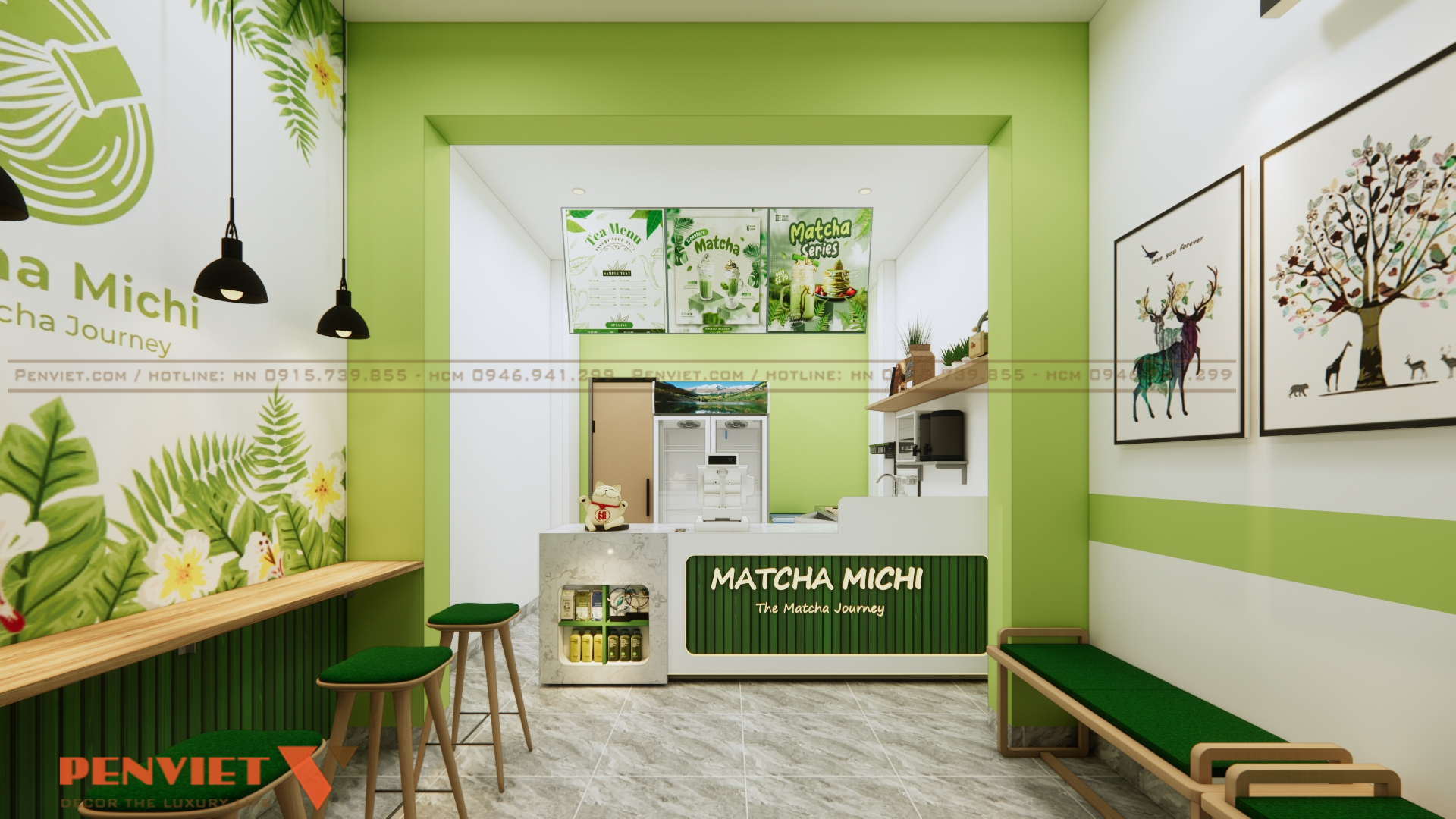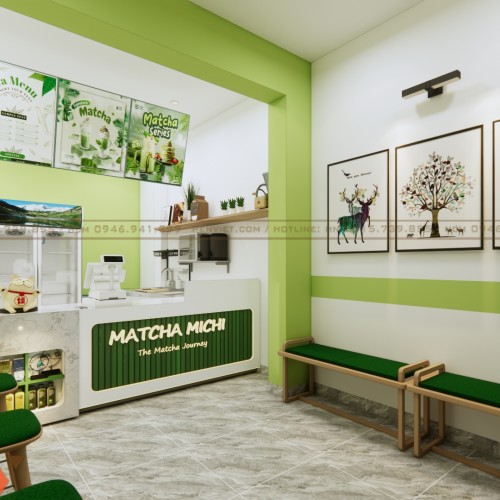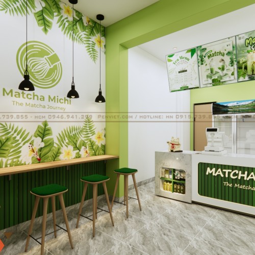 Với diện tích chỉ 25m², tiệm trà sữa Matcha Michi được cải tạo theo hướng tươi mới và dễ nhận diện. Thiết kế tập trung vào màu sắc thương hiệu, công năng bán mang đi và trải nghiệm ngồi nhanh. Không gian nhỏ nhưng vẫn tạo cảm giác thoáng và sáng. Dự án phù hợp cho chủ đầu tư muốn làm mới mô hình trà sữa quy mô gọn.