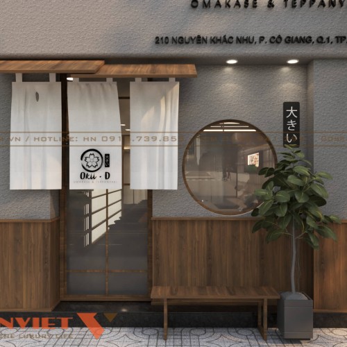 Trong lòng khu phố sôi động của quận 1, TP.HCM, nhà hàng Okii - D Omakase & Teppanyaki là điểm nhấn văn hóa Nhật Bản giữa đô thị hiện đại. Từ thiết kế mặt tiền tinh tế đến không gian nội thất đậm chất truyền thống, mọi chi tiết tại thiết kế nhà hàng Okii - D đều được chăm chút kỹ lưỡng. Tất cả tổng thể mang lại trải nghiệm ẩm thực cao cấp, chuẩn mực và đầy cảm hứng cho thực khách.