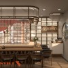 Một trong những điểm thành công trong thiết kế nhà hàng Okii - D chính là sự đồng bộ giữa mặt tiền và không gian nội thất. Từ màu sắc, chất liệu đến hình ảnh logo và kiểu chữ đều nhất quán, mang lại cảm giác nhận diện thương hiệu mạnh mẽ nhưng tinh tế.
