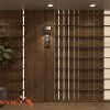 Trần nhà được thiết kế nổi bật với hệ đèn âm trần kết hợp nan gỗ và mặt kính mờ đục, tạo ra ánh sáng dịu nhẹ, lan tỏa đều, mang lại không gian ấm áp và thư giãn. Kiểu thiết kế này không chỉ đẹp về mặt thẩm mỹ mà còn giúp nâng cao trải nghiệm thị giác trong suốt bữa ăn.