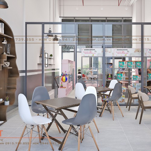 Trên đây là một số hình ảnh của dự án thiết kế quán cafe kết hợp shop trẻ em mà Penviet đã thực hiện. Hy vọng qua mẫu cửa hàng trên, độc giả sẽ có thêm nhiều gợi ý tham khảo cho không gian cửa tiệm của mình!