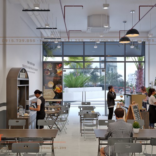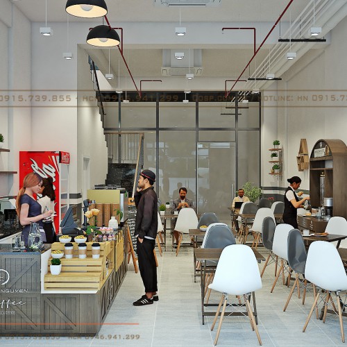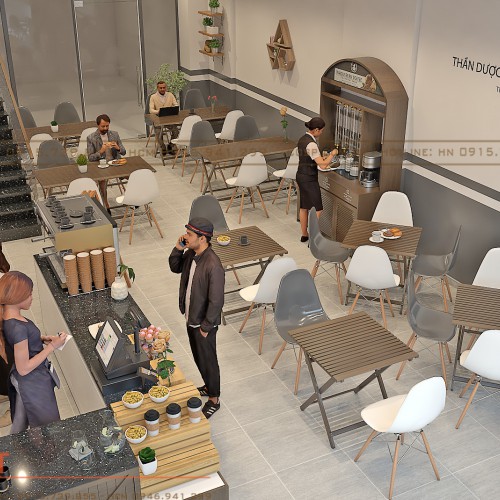 Quầy thu ngân được thiết kế tích hợp quầy pha chế, nhờ đó tạo sự linh hoạt và thuận tiện cho nhân viên trong quá trình làm việc và phục vụ chu đáo cho khách hàng.
