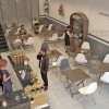 Kệ trưng bày đặt áp tường với chất liệu gỗ MDF giúp tiết kiệm tối đa chi phí