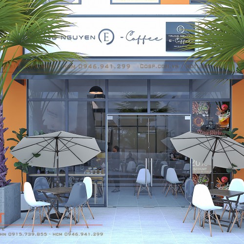 Quán cafe E-Coffee được thiết kế theo phong cách hiện đại