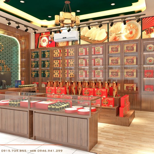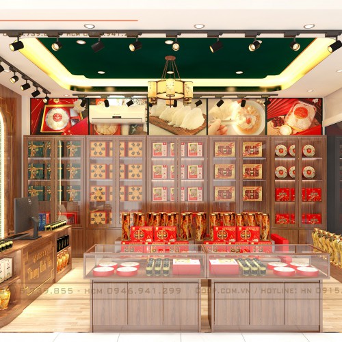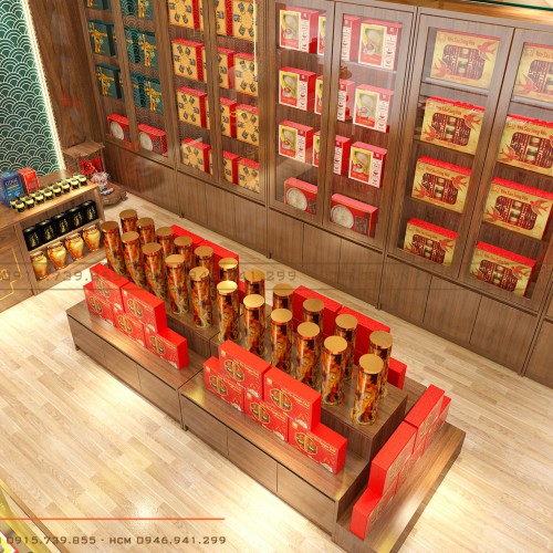 Bố trí tủ kệ khoa học là một trong những phương án được chúng tôi sử dụng để giải đáp bài toán không gian cho cửa hàng Sâm – Yến này.