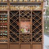 Phần trên tủ rượu là kệ trang trí. Chất liệu MDF chống ẩm Thái Lan phủ Melamine dày 18mm, hậu alu khung sắt phi 20 mạ nhũ vàng. Kệ trang trí trải dài từ đầu đến cuối cửa hàng nên có thể trưng bày được rất nhiều rượu.
