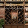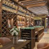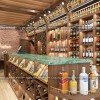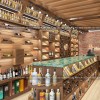 Ánh sáng bên trong cửa hàng rượu không quá gắt. Lượng ánh sáng được cung cấp từ đèn rọi và đèn trần chiếu vào những nội thất màu gỗ chỉ tăng thêm vẻ đẹp cho toàn bộ không gian mà thôi. Ánh sáng vừa phải cùng với nội thất màu gỗ tạo nên không gian ấp áp, sang trọng và cũng thân thiện nữa.