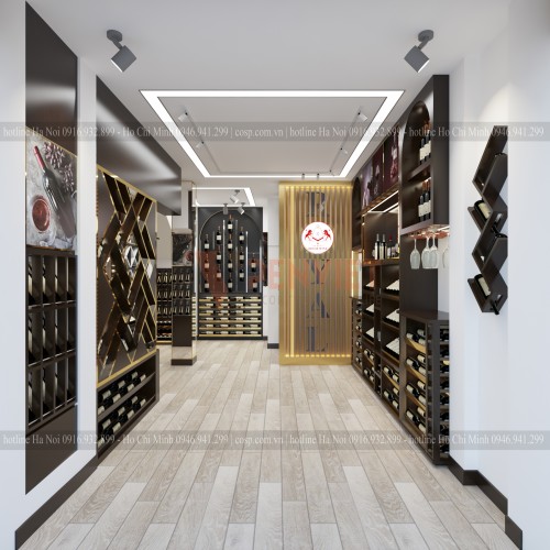 Một mẫu thiết kế showroom rượu có phong cách thiết kế sang trọng cùng với những điểm nhấn từ viền inox mạ vàng đã được Nội Thất Cosp thiết kế vào tháng 11 năm 2020. Đây là một trong những dự án thiết kế showroom rượu mini nhưng lại có vẻ đẹp thẩm mỹ không kém phần nào so với những showroom lớn hơn. Hãy cùng chúng tôi tham khảo một vài hình ảnh và những mô tả về nội thất showroom rượu này nhé.