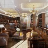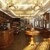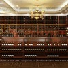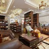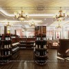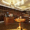 Yếu tố không thể thiếu góp phần tạo nên thành công cho thiết kế showroom rượu này chính là những đường phào chỉ và những chiếc đèn chùm. Từng đường phào chỉ được để tâm cùng những đường họa tiết uốn lượn vàng đồng. Những chiếc đèn trần cỡ lớn cũng được sơn phủ một lớp vàng óng ánh tạo nên một không gian trưng bày đẳng cấp và thời thượng.