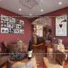 Đây là khu vực thử rượu phía bên trái khi bước vào cửa hàng. Khu vực có nét gì đó tân cổ điển bởi bàn ghế nơi này rất cổ. Những chiếc ghế chân gỗ MDF đệm bọc da bò có dáng ngồi cao. Bàn được thiết kế như một bình rượu gỗ cổ bên trong có các đợt hình tròn để chứa đựng đồ dùng. Backgroud là bức tường gồm hàng loạt những bức tranh decor trắng đen. Không gian nơi đây thêm phần hoài niệm hơn khi được ánh nắng chiếu vào.