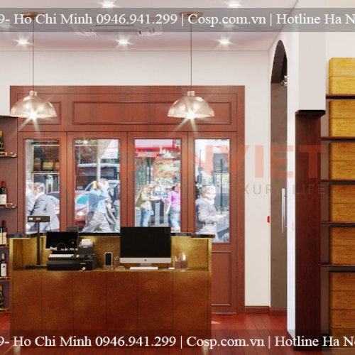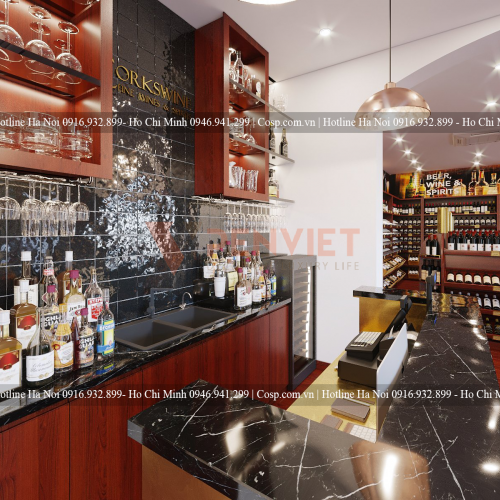 Thiết kế quầy thu ngân showroom rượu Corkswine