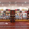 Sử dụng những kệ sát tường để trưng bày rượu, tuy nhiên mỗi một khu vực lại là kệ sát tường có kiểu thiết kế khác nhau nhằm trưng bày loại gỗ đó cho tốt nhất. Kệ đa số được làm bằng gỗ MDF Venner rất giống gỗ tự nhiên. Loại gỗ có giá thành cao này tất nhiên sẽ cho chất lượng tốt và tính thẩm mỹ cao rồi. Các kệ cao, phần trán tủ dán tranh backlist xuyên sáng, chân tủ có thêm những ngăn tủ bằng gỗ thông màu vàng riêng biệt.