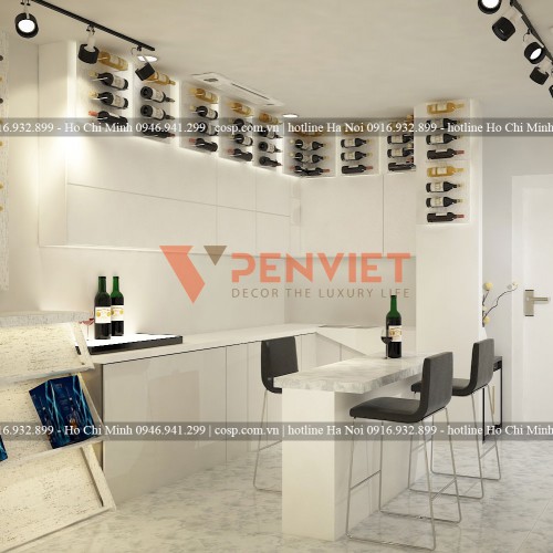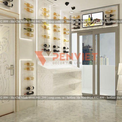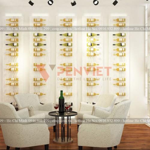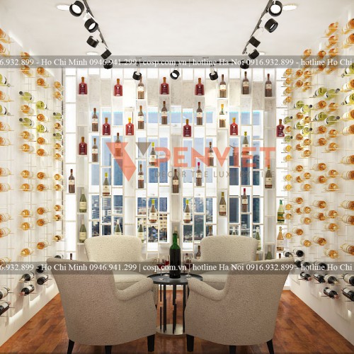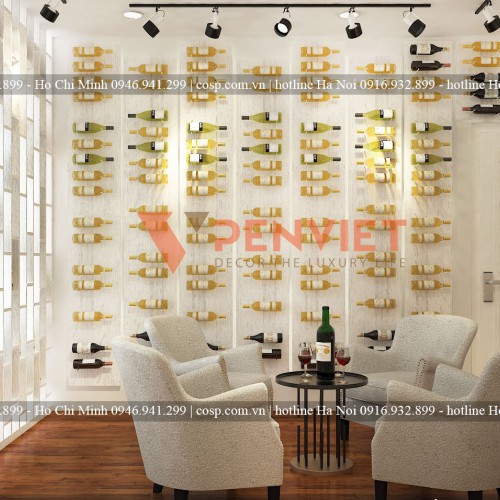 Nếu để ý trên các thước phim truyền hình, các không gian gian trưng bày rượu thường rất đơn giản, không sử dụng nhiều nội thất cầu kì. Mục đích của việc làm này là để tạo ra một không gian thưởng thức rượu tự nhiên và thân thuộc nhất, từng hương vị rượu sẽ đọng lại dư âm trong cổ họng của người thưởng thức. Do đó, KTS của Penviet cũng đã áp dụng cách làm này với thiết kế showroom rượu của anh Hòa.
